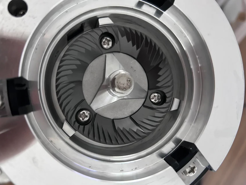 Wenn man es genau nimmt, kann man kontrollieren und ggf. justieren, dass die Mahlscheiben einer Scheibenmühle korrekt ausgerichtet sind.